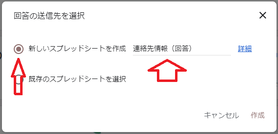 【新しいスプレッドシートを作成】にチェックを入れて【作成】をクリックします。