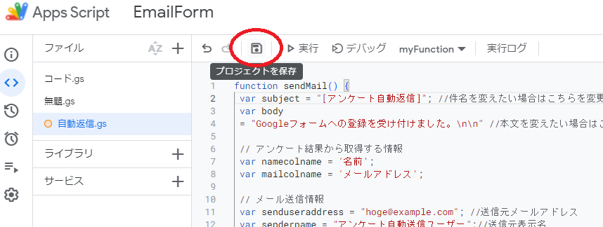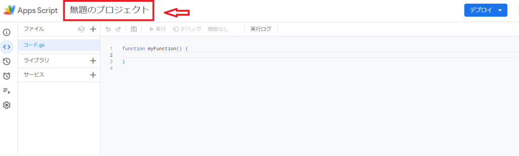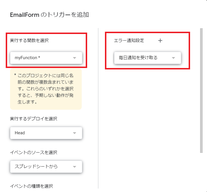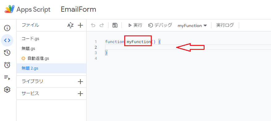 【myFunction】という関数名を好きな名前に変更しましょう。