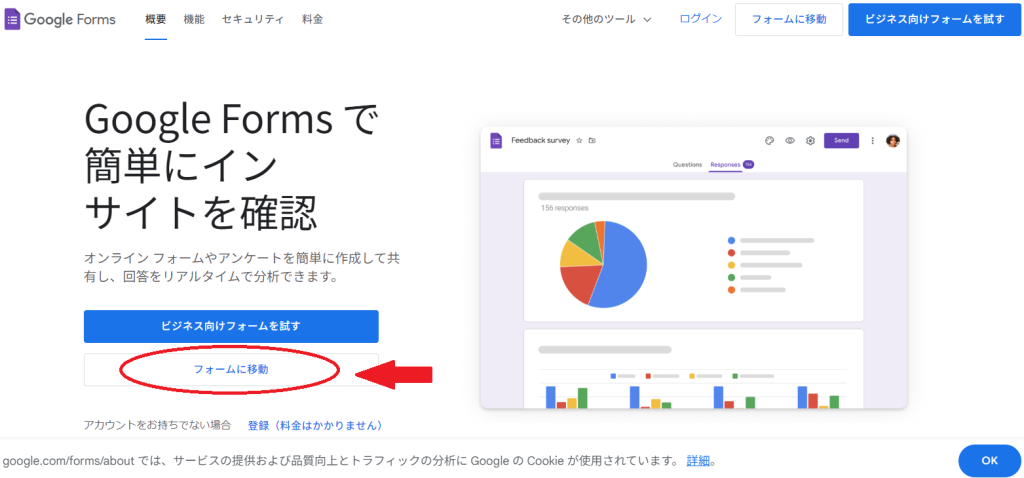 Googleフォームのページに遷りますので【フォームに移動】をクリックします。