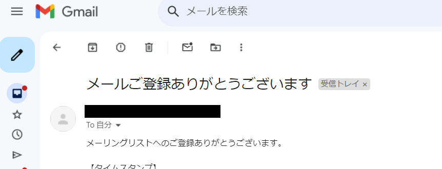 メールを確認: フォームに入力したメールアドレス宛に、自動返信メールが届いていることを確認します。