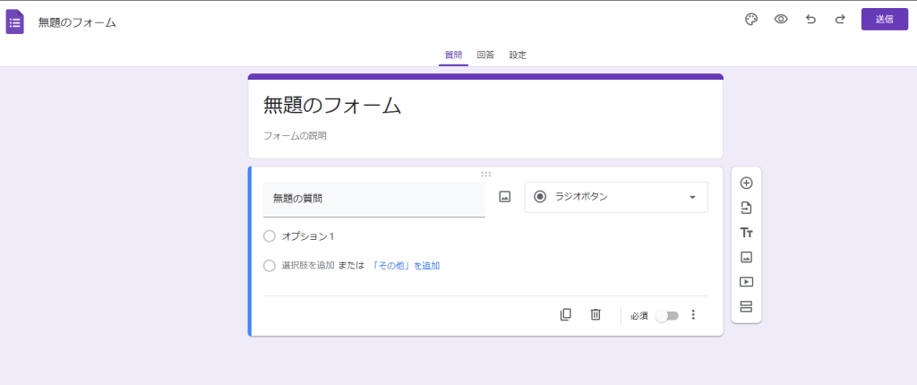 「もっと自由にデザインしたい」「自分のイメージにぴったりのフォームを作りたい」という方は、空白のフォームから作成することも可能です。