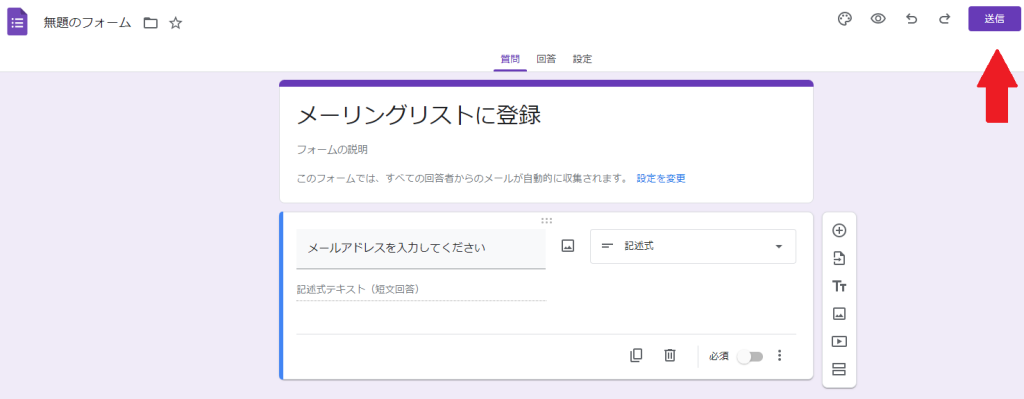 一番簡単なのが、Googleフォームから直接設定する方法です。