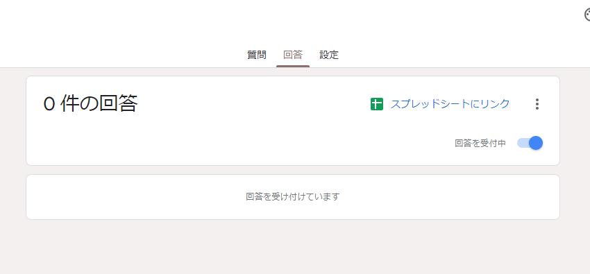 - Googleフォームの編集画面を開き、上部のメニューから「回答」タブをクリックします。